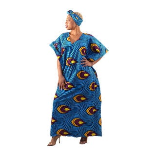 Our Ankara Print Kaftan is made from soft, breathable cotton and is available in up to three styles. It offers a comfortable fit that flows to the floor, complete with adjustable waist ties to show off your curves. Each kaftan has wide sleeves for added comfort and comes with a matching headwrap.